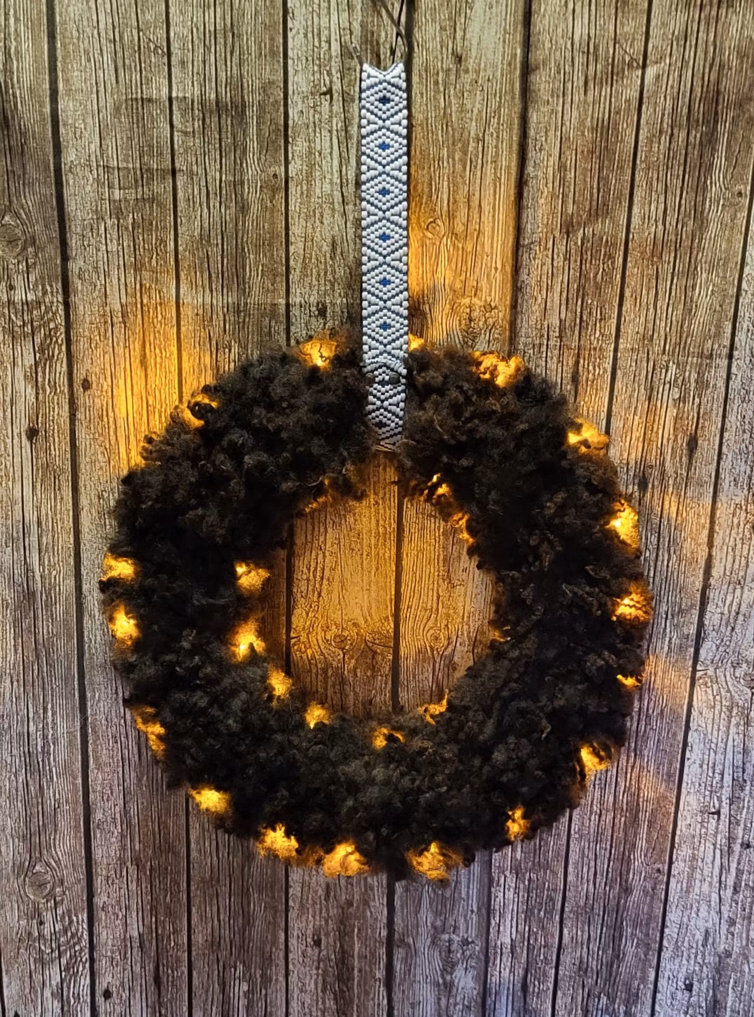 Stommen till kransen är 45 cm men med ullen bygger den ca. 5 cm till.