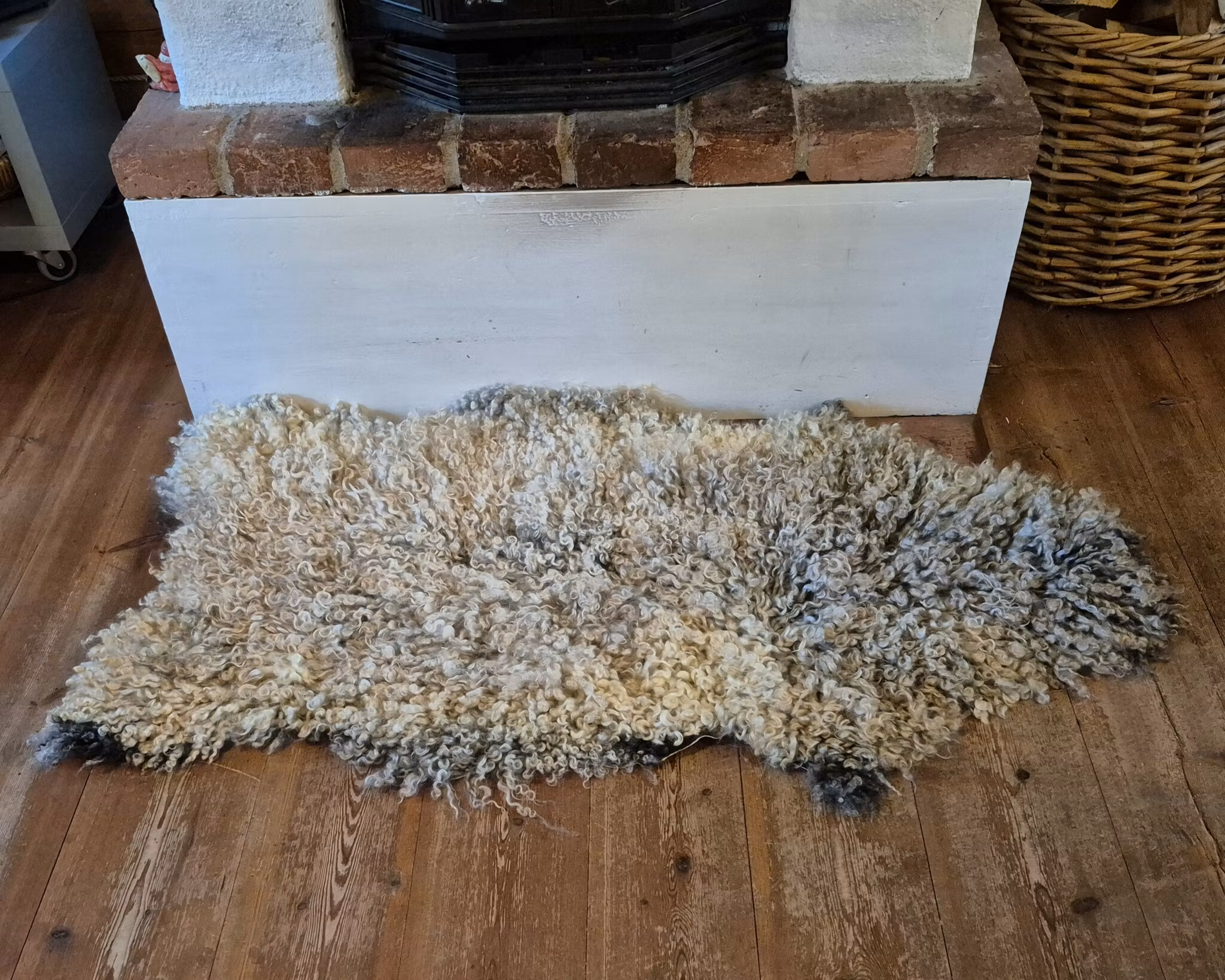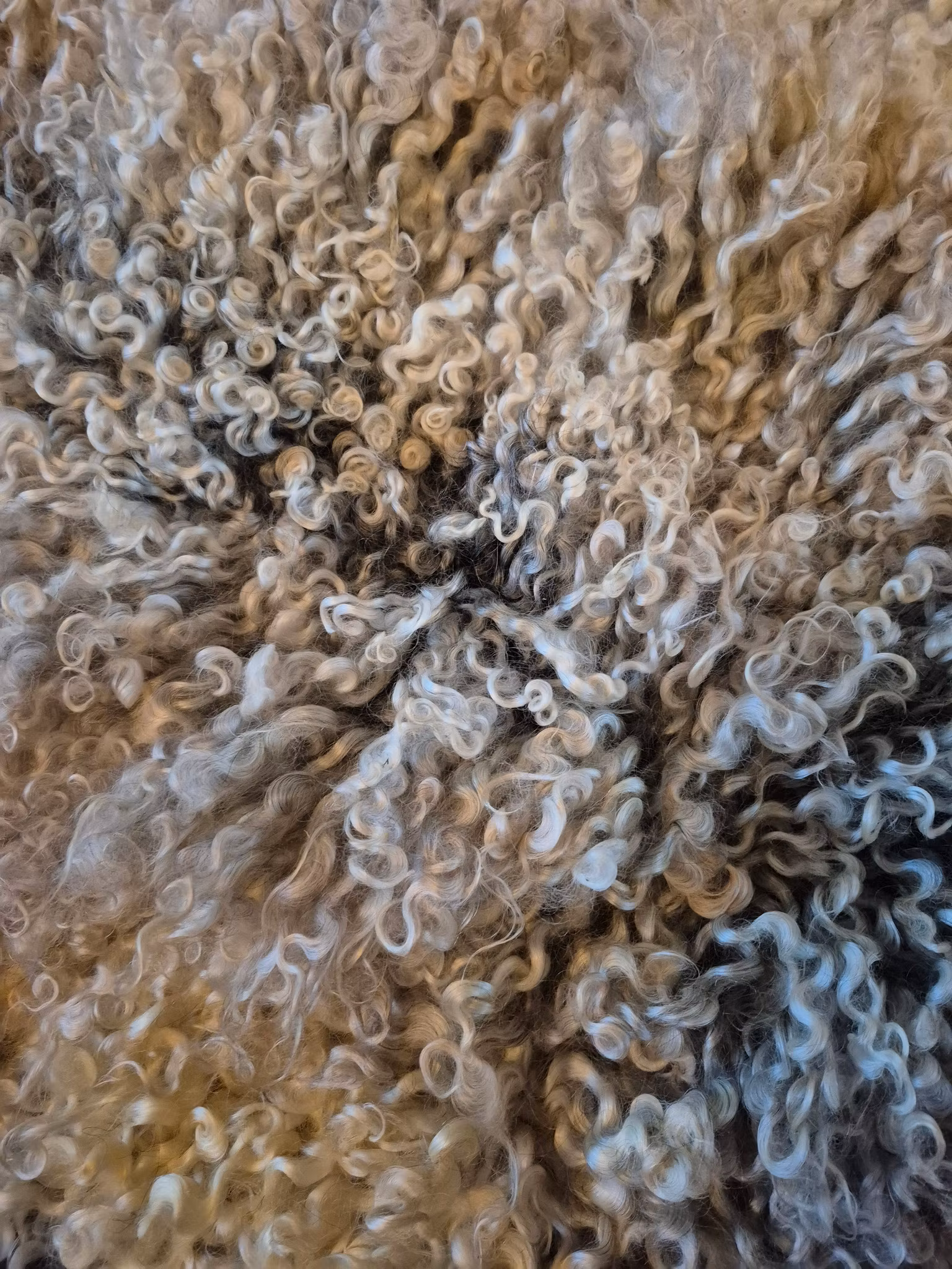 Ljusgrå fårfäll med långa lockar – ekologiskt fettgarvad i Järvsö